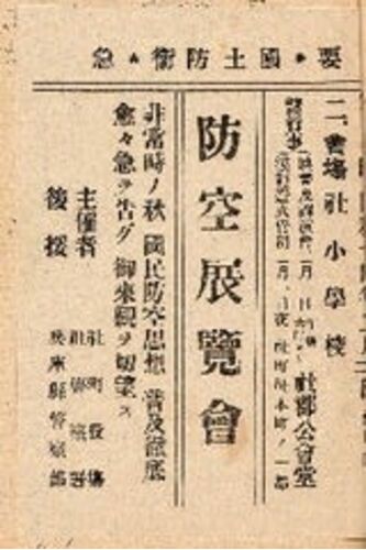 社区事務所の「諸通達綴」に昭和14年(1939)2月に開かれた「防空展覧会」の小さなビラが綴じられていました。 支那事変勃発から3年目を迎えるなかで、こうした軍事に関する講演会や展覧会、さらに訓練などの通知が増えています。このビラの次には「…