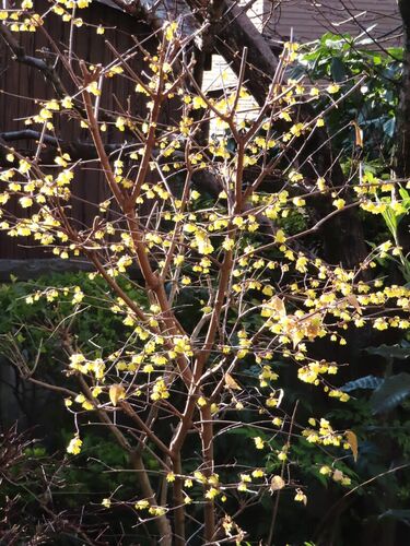 25日(土)、朝から冷たい風が吹きました。昨日の春のような暖かさから真冬に戻ったようでした。 それでも庭に射す日の光は明るく、南天の葉が紅や黄色に浮かび上がっていました。ロウバイの木もほぼ満開になり、透き通った花びらは冬の日の光に、まるで自…